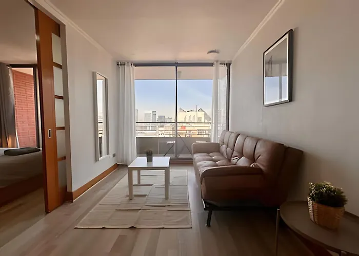Renovado Departamento En Las Condes is furnished with a sofa set and a work desk and features amenities like air conditioning, along with a TV. Guests staying in the property will enjoy the convenience of a hairdryer and bath sheets in the bathroom.